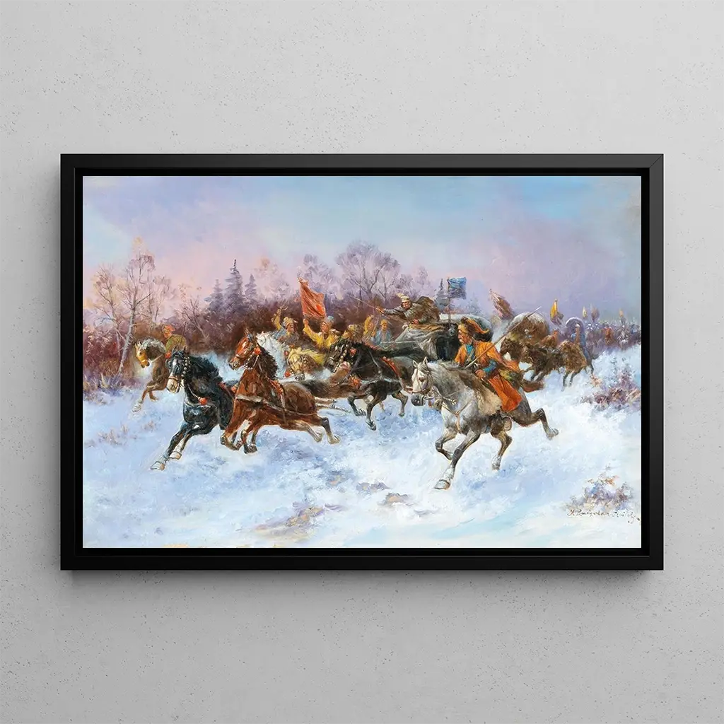 Transport d'or en Sibérie : une odyssée visuelle au cœur des contrées gelées Le tableau "Transport d'or en Sibérie" d'Adolf Baumgartner-Stoiloff évoque une scène captivante, où l'or scintillant contraste avec les paysages froids et austères de la Sibérie. Les couleurs riches et vibrantes, allant des dorés éclatants aux bleus profonds, créent une atmosphère à la fois majestueuse et mystérieuse. La technique de Baumgartner-Stoiloff, qui mêle réalisme et touches impressionnistes, permet de ressentir l'intensité de l'effort humain face à la nature. Le regard est attiré par les personnages en mouvement, chargés de trésors, qui semblent presque danser au rythme de la neige et du vent. Adolf Baumgartner-Stoiloff : un maître du réalisme romantique Adolf Baumgartner-Stoiloff, actif au XIXe siècle, est un artiste dont le travail s'inscrit dans le mouvement du réalisme romantique. Influencé par les grands maîtres de son temps, il a su capturer la beauté des paysages tout en mettant en avant la condition humaine. Son œuvre est marquée par une attention particulière aux détails et une volonté de représenter la nature dans toute sa splendeur. "Transport d'or en Sibérie" témoigne de son intérêt pour les récits d'aventure et les explorations, reflétant une époque où la découverte de nouveaux territoires fascinait l'imaginaire collectif. Une acquisition décorative aux multiples atouts La kunstdruk de "Transport d'or en Sibérie" est une pièce décorative qui saura enrichir votre intérieur, qu'il s'agisse d'un salon, d'un bureau ou d'une chambre. Sa qualité d'impression et sa fidélité aux couleurs originales en font un choix idéal pour ceux qui souhaitent apporter une touche d'élégance et d'histoire à leur décoration. Ce tableau attire le regard et suscite la curiosité, tout en offrant une ambiance chaleureuse et inspirante. En intégrant cette toile dans votre espace, vous invitez non seulement l'art, mais aussi une histoire fascinante à partager avec vos invités.
