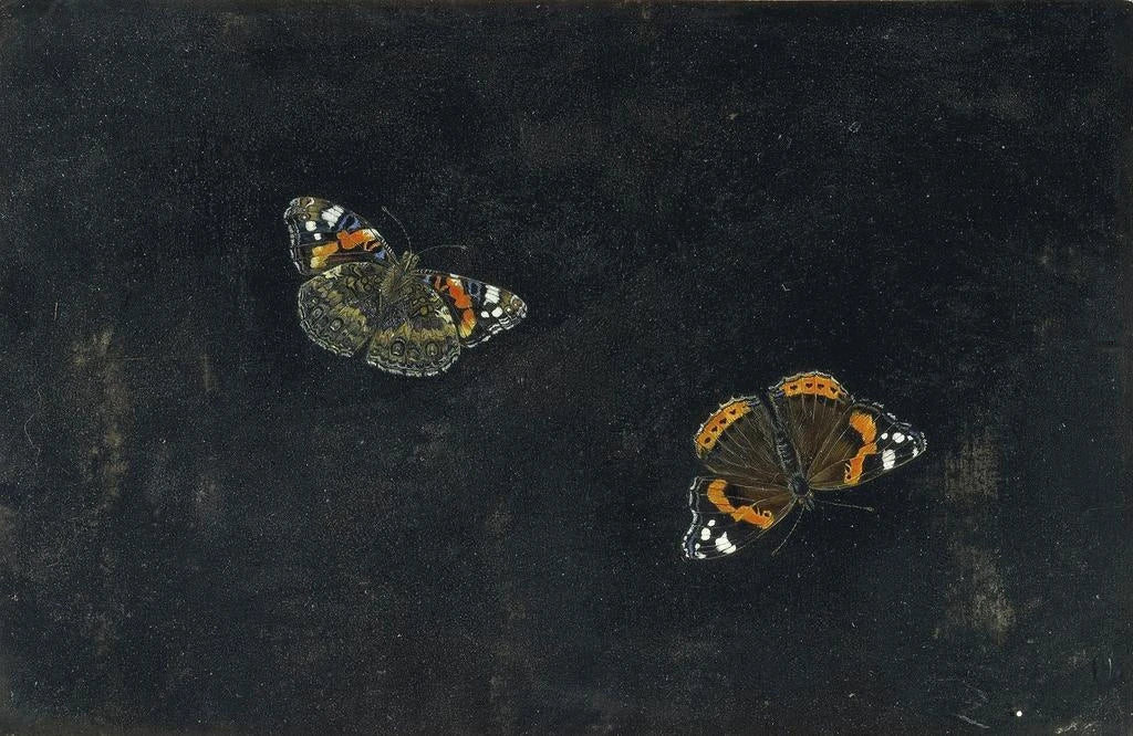 Giovanna Garzoni, actief in de 17e eeuw, wordt vaak erkend als een van de eerste vrouwelijke schilders die naam maakten in het stilleven. Geïnspireerd door het barok en de Italiaanse tradities, onderscheidt haar werk zich door een minutieuze aandacht voor details en een verfijnd kleurenpalet. Ze wist zich te vestigen in een artistieke wereld die gedomineerd werd door mannen, en haar werken getuigen van een unieke gevoeligheid voor de natuur. "Deux papillons" past in een periode waarin de kunst van de natuurgetrouwe voorstellingen een grote groei doormaakte, en weerspiegelt zowel de schoonheid van de natuurlijke wereld als de technische vaardigheid van de kunstenaar.