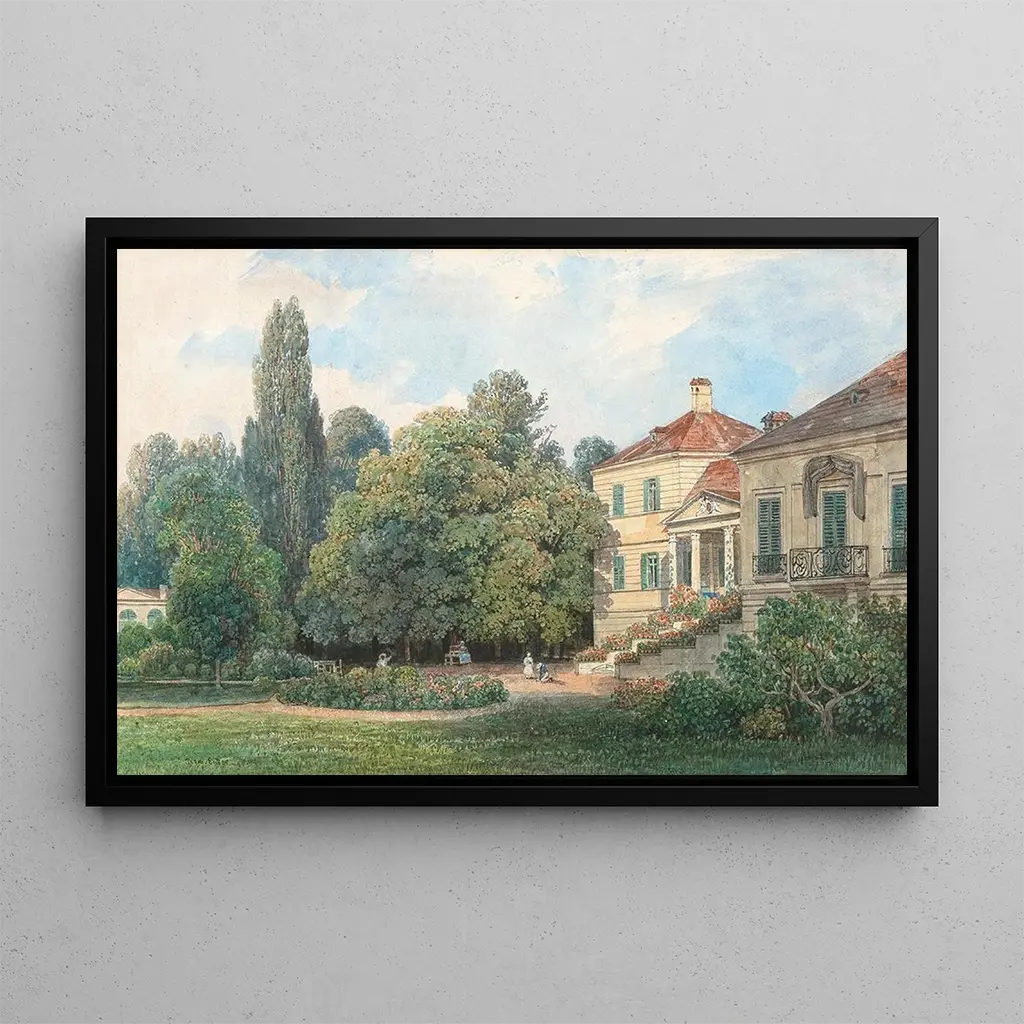Villa in een Park: een harmonie tussen natuur en architectuur De kunstdruk van het doek "Villa in een Park" van Thomas Ender dompelt ons onder in een wereld waar natuur en architectuur elkaar ontmoeten met oneindige gratie. De groene tinten van de bomen vermengen zich met de zachte nuances van de villa, waardoor een serene en rustgevende sfeer ontstaat. De aquareltechniek, met haar delicate kleuroverlays, brengt elk detail tot leven, van ritselende bladeren tot de reflecties in het water. Dit kunstwerk nodigt uit tot een rustige contemplatie, waarbij je bijna het geruis van de wind in de takken kunt horen. Thomas Ender: een meester van het romantische landschap Thomas Ender, Oostenrijkse schilder uit de 19e eeuw, wordt erkend om zijn landschappen vol romantiek. Geïnspireerd door de majestueuze natuur van zijn thuisland, wist hij scènes vast te leggen met verbluffende schoonheid. Actief tijdens de periode van het romantisme, was Ender ook een pionier op het gebied van de aquarel als artistieke techniek. Zijn werken getuigen van een scherpe gevoeligheid voor licht en kleur, wat hem onderscheidde van zijn tijdgenoten. Door thema's van natuur en architectuur te verkennen, heeft hij een blijvende erfenis achtergelaten in de kunstwereld. Een decoratief stuk met vele voordelen De kunstdruk van "Villa in een Park" is een ideaal decoratief stuk voor diverse ruimtes, of het nu in een elegante woonkamer, een inspirerend kantoor of een rustgevende slaapkamer is. De afdrukkwaliteit garandeert een trouwheid aan de kleuren en details van het originele werk, en brengt een vleugje elegantie in uw interieur. Met zijn onmiskenbare esthetische aantrekkingskracht is deze doek niet alleen een decoratief accent, maar ook een bron van dagelijkse inspiratie, waardoor iedereen kan ontsnappen aan de wereld van natuurlijke schoonheid.