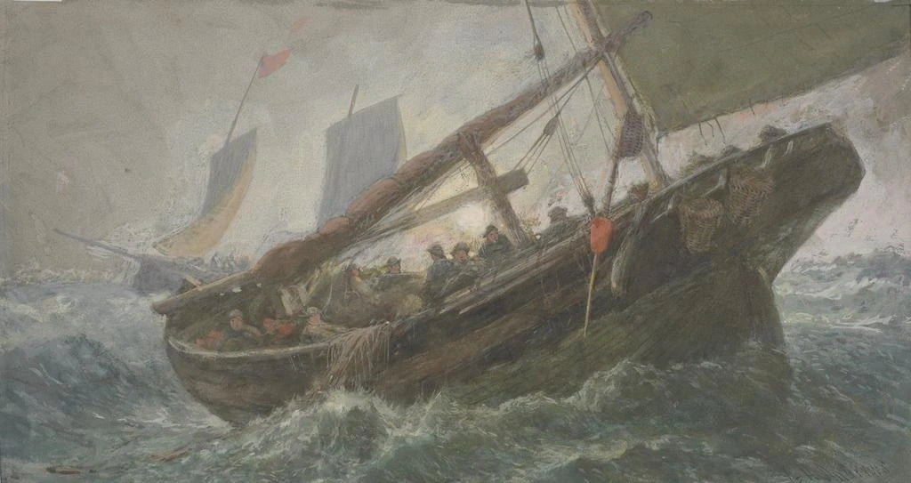George Henry Andrews, actief in de 19e eeuw, staat bekend om zijn werken die de schoonheid en de ruigheid van het maritieme leven vastleggen. Geïnspireerd door de realistische beweging, streeft hij ernaar de zee en haar activiteiten met verbluffende precisie te weergeven. Zijn kunstdrukken, vaak geïnspireerd door zijn reizen langs de Britse kusten, getuigen van een diepe bewondering voor de natuur en de mensen die haar exploiteren. Andrews heeft naam gemaakt in de kunstwereld, en zijn werk heeft vele hedendaagse kunstenaars beïnvloed. Door elementen van het dagelijks leven van vissers te integreren, heeft hij een essentieel aspect van de maritieme cultuur van zijn tijd weten te vereeuwigen.