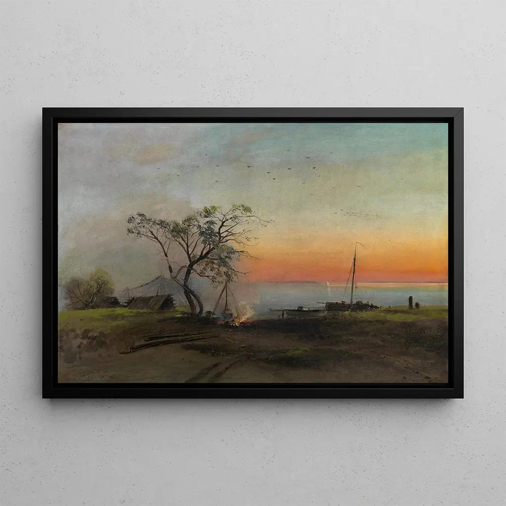 Pêcheurs op de Wolga: een levensscène aan de waterkant Het doek "Pêcheurs sur la Volga" van Alexei Kondratievich Savrasov beeldt een rustige en contemplatieve sfeer uit, waarin de natuur en de mens harmonieus samenleven. De vissers, delicate silhouetten, zijn verdiept in hun activiteit, terwijl de weerspiegelingen van de zon in het water een betoverend lichtspel creëren. De zachte kleuren, variërend van rustgevende blauwen tot subtiele groenen, roepen een sereniteit op die uitnodigt tot dagdromen. De techniek van Savrasov, die realisme en impressionisme combineert, brengt deze scène tot leven en maakt bijna voelbaar het gefluister van de rivier en de adem van de wind. Alexei Kondratievich Savrasov: pionier van het Russische landschap Savrasov, geboren in 1830, wordt beschouwd als een van de pioniers van het Russische landschap. Zijn stijl, beïnvloed door romantiek en impressionisme, markeerde een breuk met de academische tradities van zijn tijd. Door elementen van het dagelijks leven in zijn werken te verwerken, wist hij de essentie van de Russische natuur vast te leggen. "Pêcheurs sur la Volga" illustreert deze aanpak perfect, waarbij de schoonheid van het landschap wordt benadrukt en tegelijkertijd eer wordt betoond aan het leven van de vissers. Savrasov was ook een mentor voor andere kunstenaars en droeg zo bij aan de ontwikkeling van het landschapskunst in Rusland in de 19e eeuw. Een decoratief stuk met vele voordelen De kunstdruk van "Pêcheurs sur la Volga" is een decoratief stuk dat zich perfect laat integreren in diverse woonruimtes, of het nu in een woonkamer, kantoor of slaapkamer is. De kwaliteit van de afdruk en de trouw aan de originele kleuren maken het een aantrekkelijke keuze voor kunstliefhebbers. Dit schilderij brengt een vleugje sereniteit en natuur in uw interieur, terwijl het gesprekken over kunst en Russische cultuur stimuleert. Met zijn tijdloze charme zal deze doek uw decoratie verrijken en elke keer een visuele ontsnapping bieden.