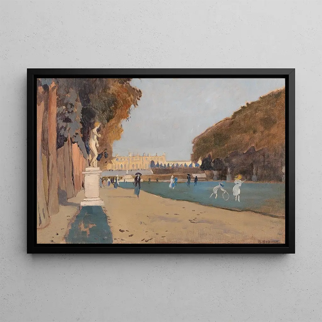 La kunstdruk de "Promenade dans les jardins du palais" de Rudolf Hellwag nous transporte dans un univers de sérénité et de beauté naturelle. Les couleurs douces et apaisantes, mêlant des nuances de vert, de bleu et de rose, créent une atmosphère de rêve. La technique de l'artiste, qui combine des coups de pinceau délicats et une attention minutieuse aux détails, donne vie à chaque élément du jardin. Les fleurs éclatantes et les feuillages luxuriants semblent presque palpables, invitant le spectateur à se perdre dans ce paysage enchanteur. Cette œuvre évoque une promenade tranquille, où l'on peut s'imprégner de la beauté de la nature.