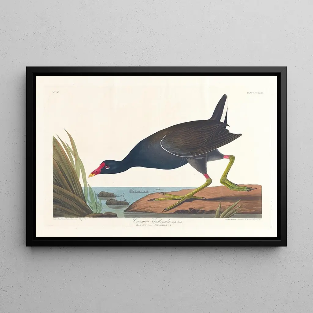Gallinule poule-d'eau mâle adulte : een portret van de wilde natuur De kunstdruk van de Gallinule poule-d'eau mâle adulte dompelt ons onder in een levendige wereld vol kleuren en details. Het werk van Audubon vangt de schoonheid van deze watervogel, met zijn rijk gekleurd verenkleed en delicate trekken. De nuances van groen, blauw en rood mengen harmonieus, waardoor een levendige en dynamische sfeer ontstaat. De aquareltechniek, gecombineerd met een minutieuze tekening, eert de gratie van deze vogel, terwijl het de sereniteit van de natuurlijke habitats die hij bewoont, oproept. Dit werk is een ware uitnodiging tot verwondering over de wilde fauna. John James Audubon : pionier in artistieke ornithologie John James Audubon is een kunstenaar en naturalist uit het begin van de 19e eeuw, bekend om zijn ornithologische studies. Geboren in Haïti in 1785, emigreerde hij naar de Verenigde Staten, waar hij zijn leven wijdde aan de observatie en weergave van Amerikaanse vogels. Zijn stijl, die realisme en romantiek combineert, heeft de manier waarop vogels in de kunst werden afgebeeld, revolutionair veranderd. Audubon werd beïnvloed door de Amerikaanse landschappen en de biodiversiteit die hij ontmoette, wat leidde tot iconische werken, zoals de serie "De Vogels van Amerika". Zijn nalatenschap blijft voortleven, waardoor hij een onmisbare figuur is in de natuurlijke kunst. Een decoratief stuk met vele voordelen De kunstdruk van de Gallinule poule-d'eau mâle adulte is een ideale decoratieve keuze om je interieur te verrijken. Of het nu in een woonkamer, kantoor of slaapkamer is, dit doek brengt een vleugje elegantie en natuur. De afdrukkwaliteit garandeert een trouwheid aan de kleuren en details van het originele werk, waardoor je kunt genieten van een onmiskenbare esthetische aantrekkingskracht. Door te kiezen voor deze kunstdruk, kies je voor een stuk dat nieuwsgierigheid en bewondering oproept, terwijl het de schoonheid van de vogelwereld viert.