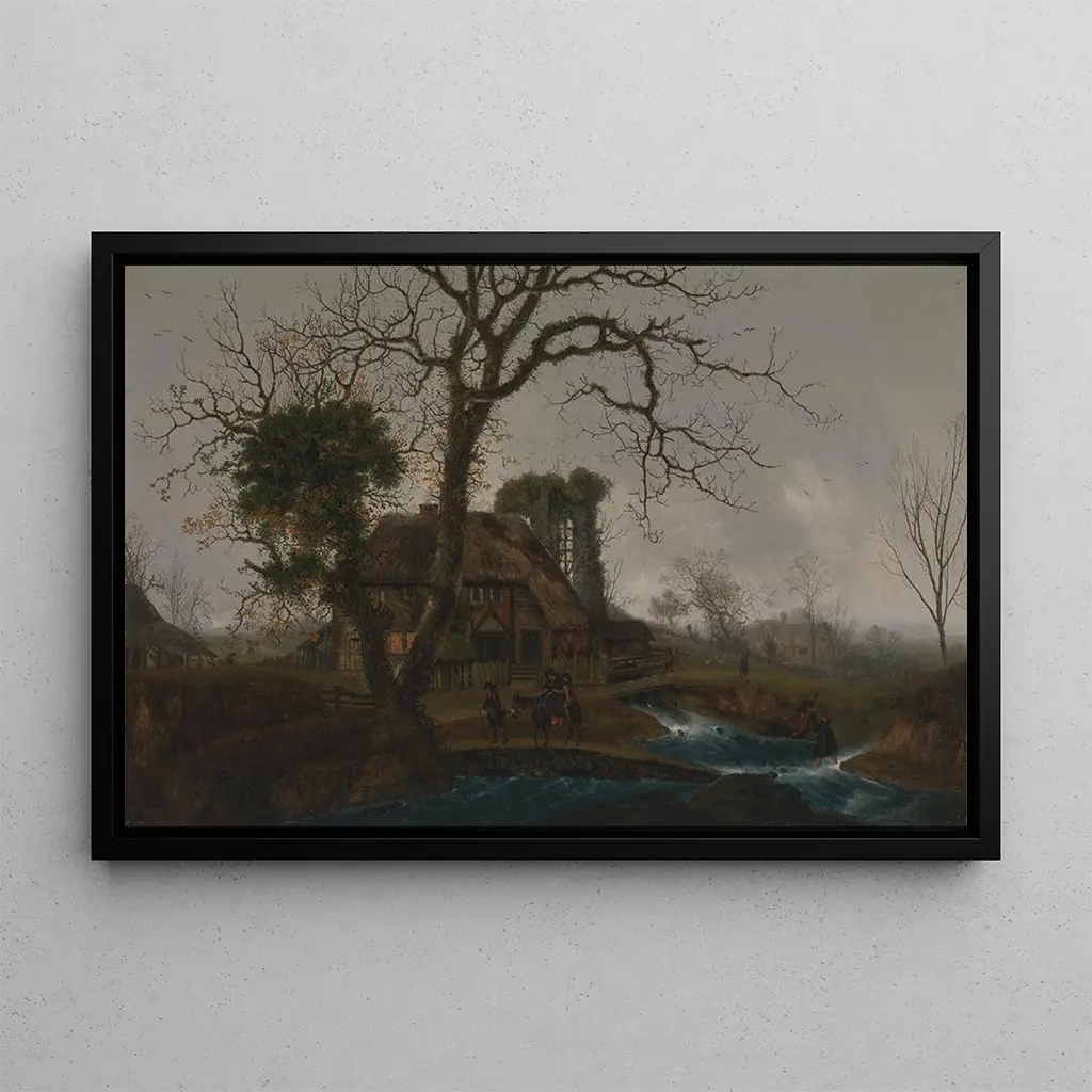 Winterlandschap: een schilderij dat de sereniteit van besneeuwde landschappen oproept Het schilderij "Winterlandschap" van George Smith brengt de kijker in een wereld van rust en winterse schoonheid. De zachte tinten wit en blauw vermengen zich harmonieus, waardoor een vredige sfeer ontstaat. De compositie, met zijn kale bomen en bewolkte hemel, nodigt uit tot contemplatie. De techniek van Smith, die realisme en impressionisme combineert, laat je de frisheid van de lucht en de rustgevende stilte van de sneeuw voelen. Elke penseelstreek lijkt de magie van een vluchtig moment vast te leggen, en biedt een venster naar een betoverend landschap. George Smith: een meester van het landschap in de 19e eeuw George Smith, actief in de 19e eeuw, staat bekend om zijn landschappen die de natuur in al haar pracht vieren. Geïnspireerd door de romantische beweging, wist hij de essentie van de seizoenen en Britse landschappen vast te leggen. Zijn werken, vaak doordrenkt met melancholie, weerspiegelen een diep respect voor de natuur en een gevoeligheid voor het licht. Smith werd ook beïnvloed door grote meesters van het landschapsschilderen, waarbij hij elementen van hun stijl integreerde terwijl hij zijn eigen artistieke stem ontwikkelde. Zijn nalatenschap blijft bestaan, en "Winterlandschap" is een emblematisch voorbeeld. Een decoratieve aankoop met vele voordelen De kunstdruk van "Winterlandschap" van George Smith is een ideale keuze om je interieur te verfraaien. Of het nu in een woonkamer, kantoor of slaapkamer is, dit schilderij brengt een vleugje sereniteit en verfijning. De kwaliteit van de afdruk garandeert een trouwheid aan de kleuren en details van het originele werk, terwijl het een onmiskenbare esthetische aantrekkingskracht biedt. Door deze doek in je decoratie te integreren, creëer je een warme en uitnodigende ruimte, geschikt voor ontspanning en contemplatie. Dit schilderij is veel meer dan een eenvoudige decoratie; het is een uitnodiging om te ontsnappen naar een betoverend winterlandschap.