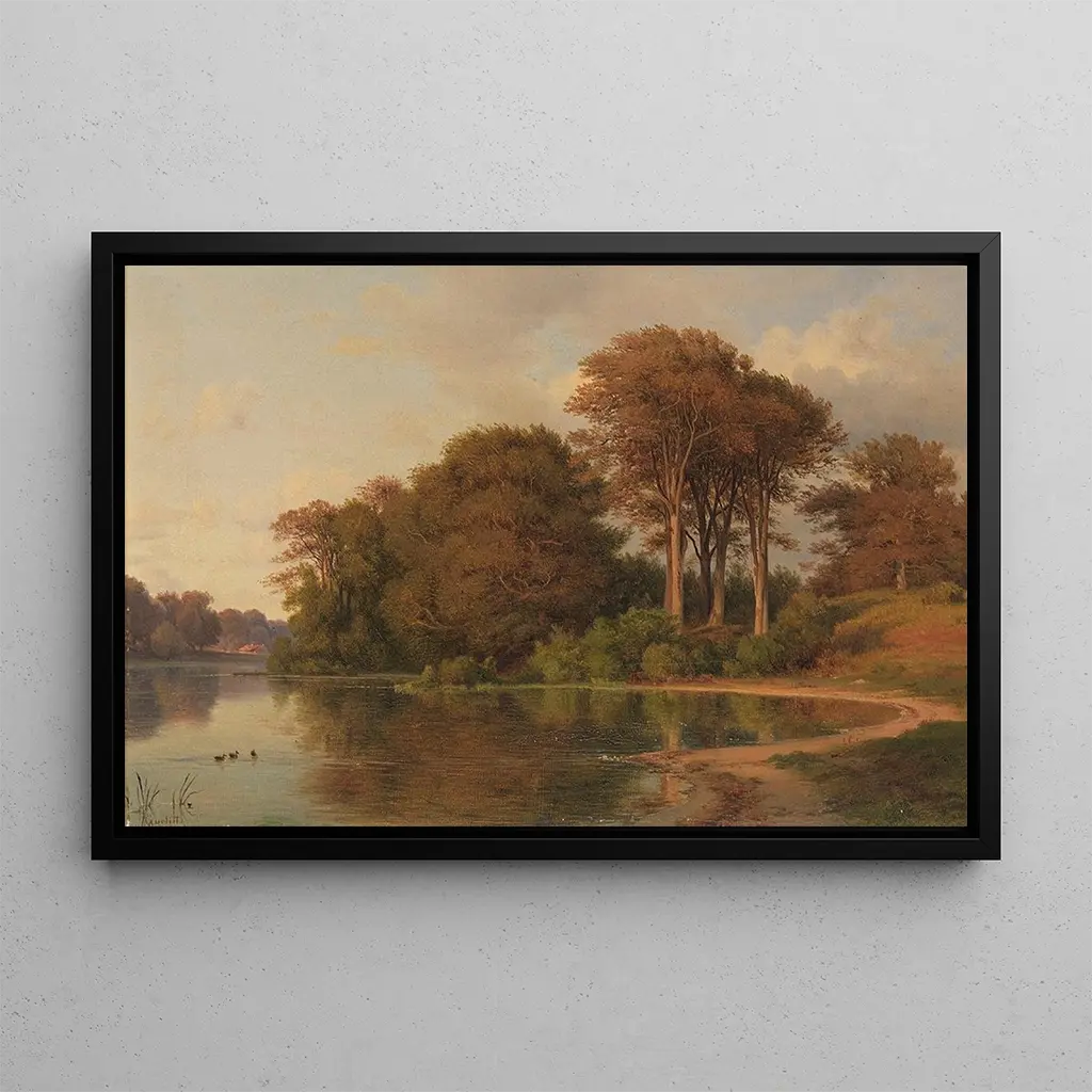 Landschap in de zomer met merenoever: een ode aan de zomerse natuur De kunstdruk van Landschap in de zomer met merenoever door Louis Gurlitt roept de zoetheid op van zonnige dagen, waarop de natuur zich in al haar pracht ontvouwt. De heldere tinten blauw en groen, gecombineerd met gouden lichtaccenten, creëren een levendige en vrolijke sfeer. De techniek van Gurlitt, die impressionisme en realisme combineert, laat je de lichte bries en het geruis van het water voelen. Elk element van het schilderij, van majestueuze bomen tot de weerspiegelingen in het meer, brengt ons in een moment van zomerse sereniteit en nodigt uit tot contemplatie. Louis Gurlitt: een kunstenaar met een hart voor impressionisme Louis Gurlitt, actief in de 19e eeuw, is een Duitse kunstenaar wiens werk binnen de impressionistische beweging valt. Geïnspireerd door de grote meesters van zijn tijd, ontwikkelde hij een unieke stijl, gekenmerkt door levendige kleuren en dynamische composities. Gurlitt heeft vaak natuurlijke landschappen verkend, waarbij hij de essentie van seizoenen en alledaagse momenten vastlegde. Zijn werk, hoewel minder bekend dan dat van sommige van zijn tijdgenoten, draagt bij aan ons begrip van de evolutie van landschapskunst in Europa en maakt hem tot een belangrijke figuur uit zijn tijd. Een decoratieve aanwinst met vele voordelen Deze kunstdruk van Landschap in de zomer met merenoever is een perfecte decoratieve keuze om een frisse toets aan je interieur te geven. Of het nu in een woonkamer, slaapkamer of kantoor is, dit doek zal je muren opvrolijken en een rustgevende sfeer creëren. De kwaliteit van de afdruk garandeert een opmerkelijke trouw aan de originele kleuren, waardoor elk detail tot zijn recht komt. Door dit kunstwerk in je inrichting te integreren, bied je je ruimte een uitnodiging tot ontspanning en ontsnapping, terwijl je de schoonheid van de zomerse natuur viert.