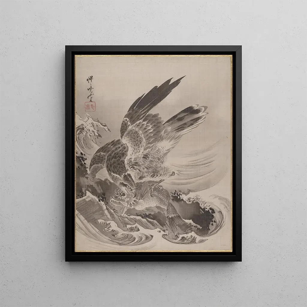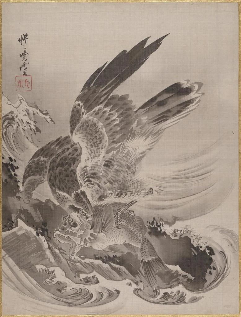 Aigle dat een vis aanvliegt - Kawanabe Kyōsai