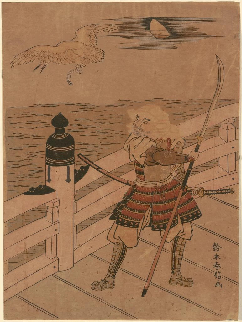 Benkei en de reiger op de brug - Suzuki Harunobu