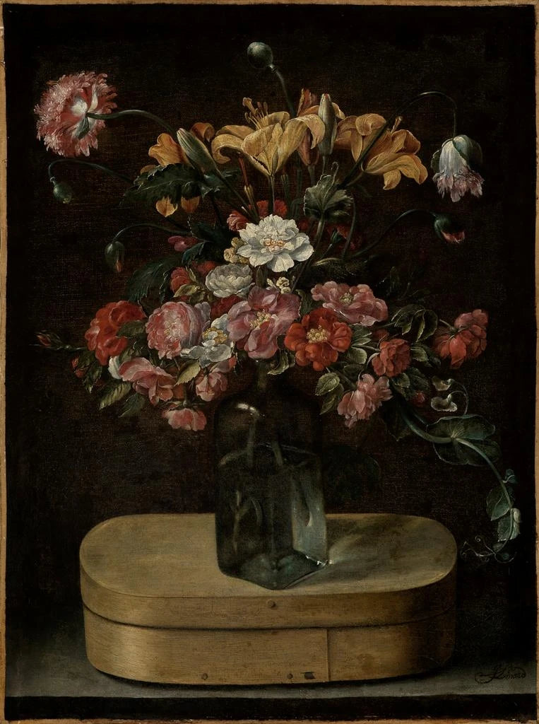 Bloemenboeket op een kartonnen doos - Jacques Linard