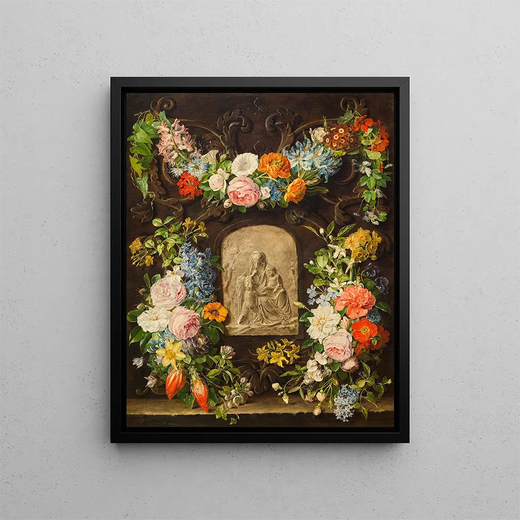 Bloemenkrans met reliëf van de Maagd - Pauline Koudelka-Schmerling