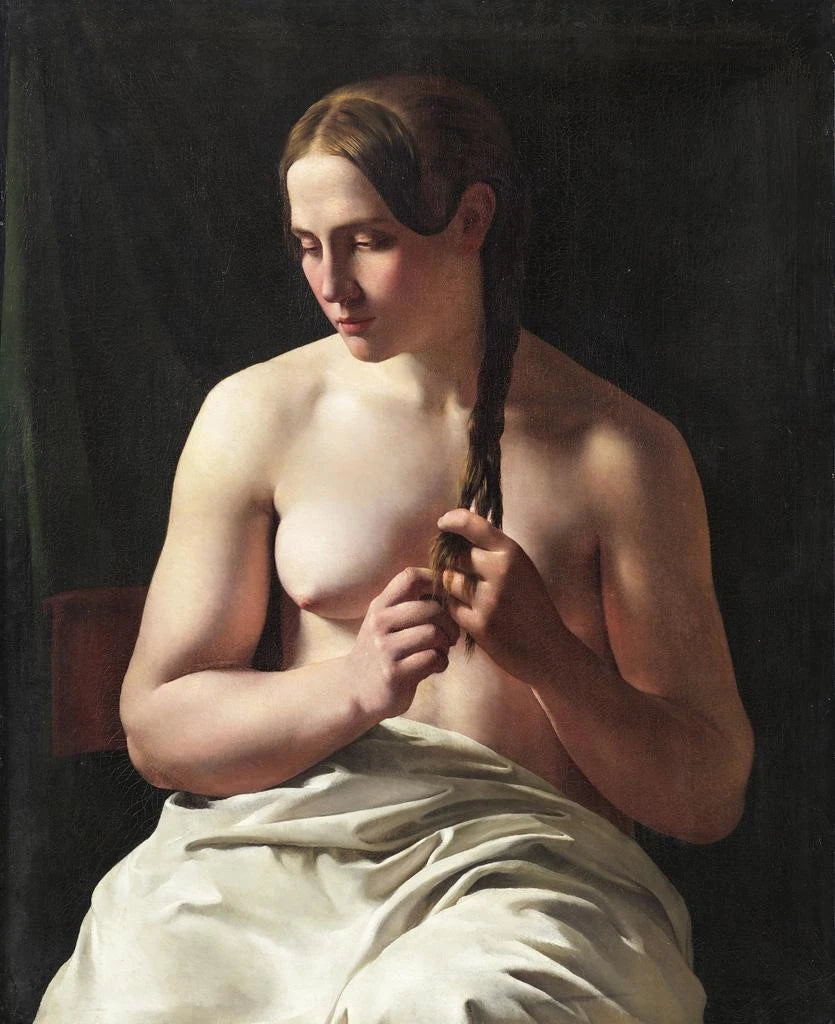 Een vrouw die haar haar opzet - Ludvig August Smith