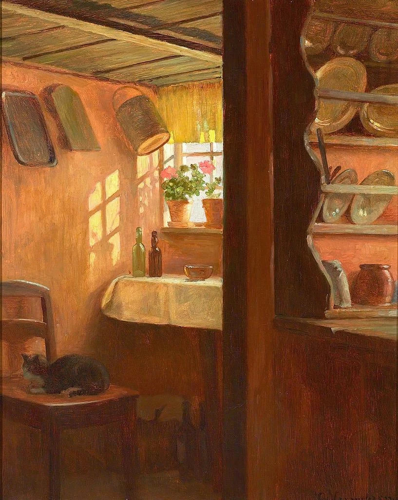 Gewone interieur met zonlicht door het raam - Gustav Vermehren