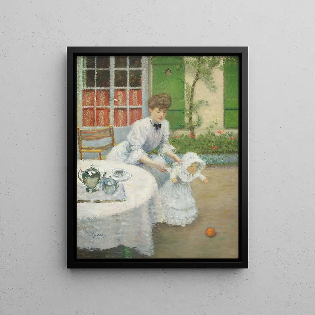 Jonge moeder met haar dochter die met een bal speelt - Jacques Wly