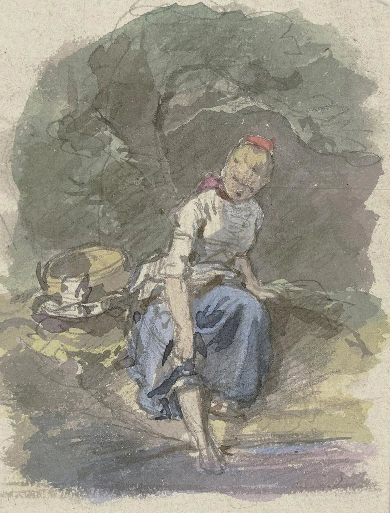 Landelijke vrouw zittend in het bos - Jakob Becker
