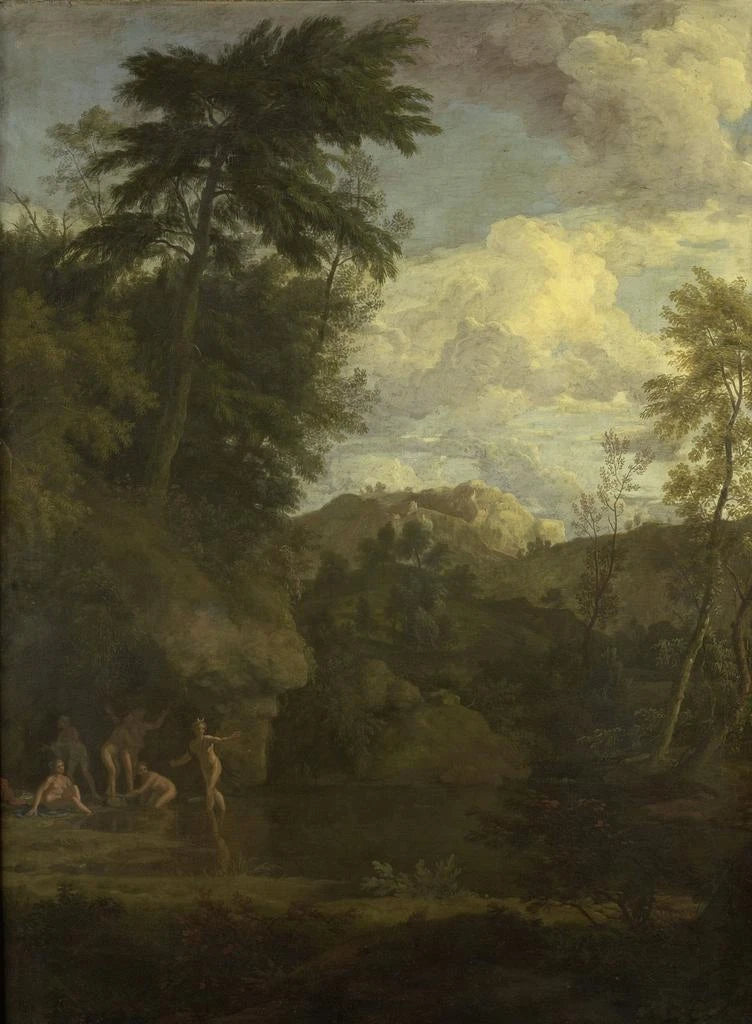 Arcadisch landschap met Diana in bad - Johannes Glauber