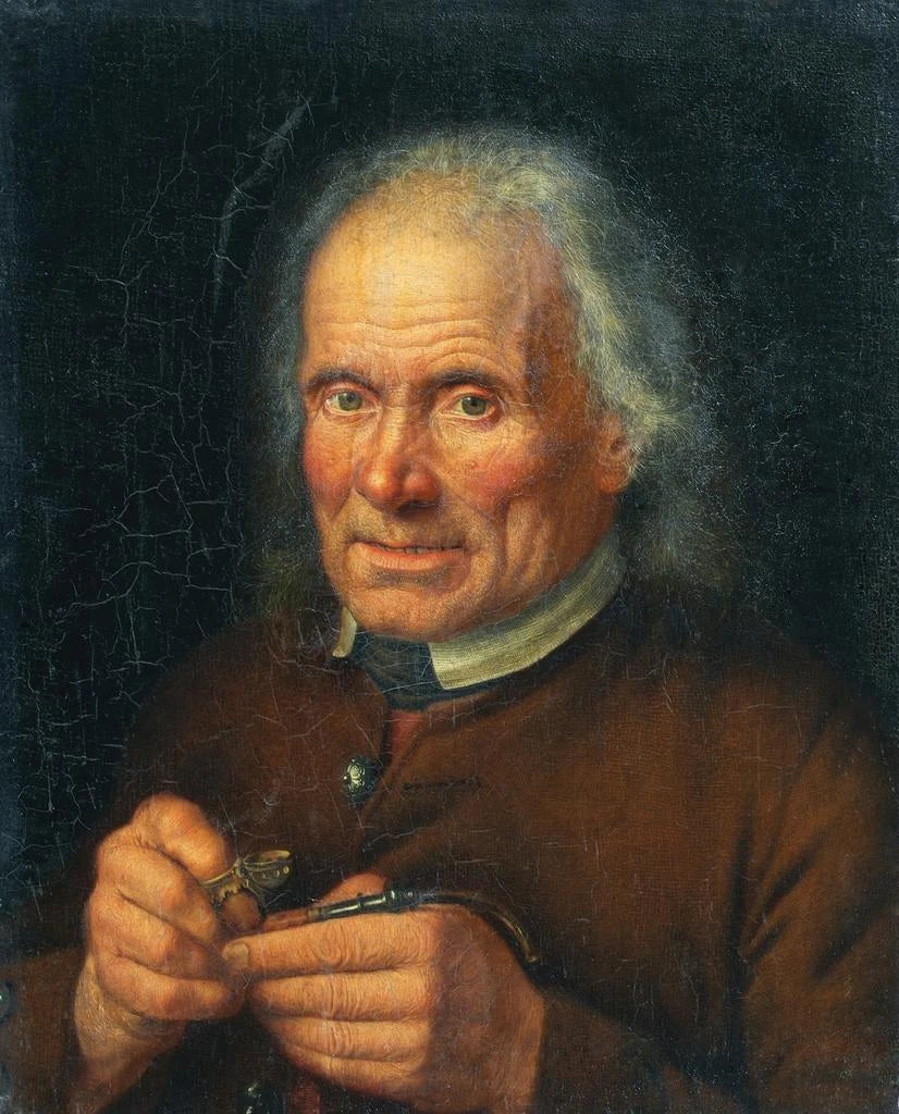 Oude boer die zijn pijp vult - Johann Baptist Höchle