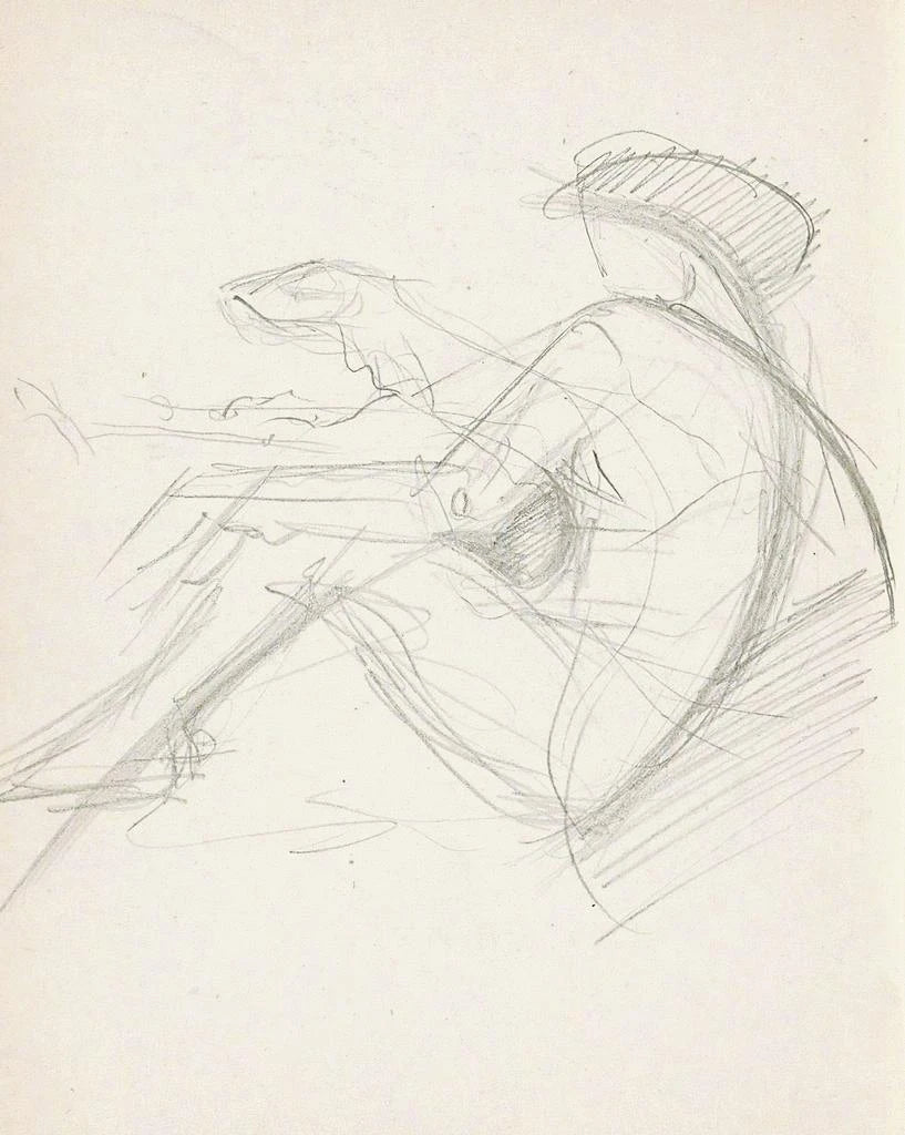 Naakte vrouw zittend met een hoed - Reijer Stolk