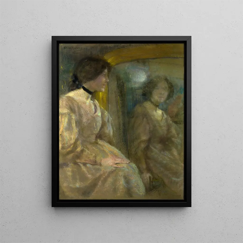 In de wereld van kunst overstijgen sommige werken hun tijdperk om tijdloze getuigen te worden van de menselijke conditie. "Spiegelreflexie" van Alice Pike Barney is een treffend voorbeeld. Dit werk, zowel intiem als universeel, dompelt ons onder in een stilzwijgend gesprek tussen reflectie en realiteit. Door de voorstelling van een vrouw die haar eigen afbeelding bekijkt, nodigt de kunstenaar ons uit om na te denken over zelfperceptie en de vele facetten van identiteit. Het schilderij, met zijn mysterieuze sfeer, trekt de aandacht en wekt een diepe nieuwsgierigheid op, waardoor de kijker wordt aangespoord om de nuances van schoonheid en zelfreflectie te verkennen.