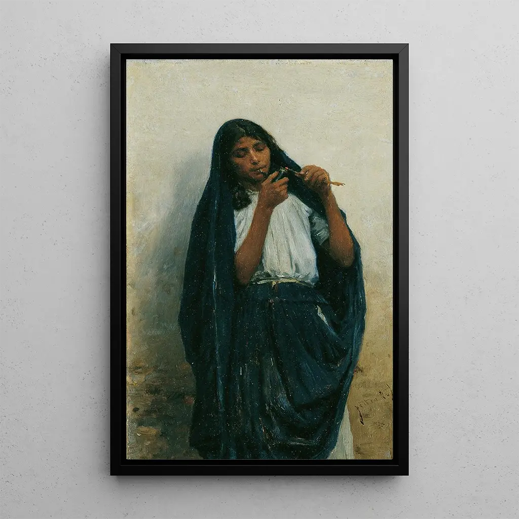 De kunstdruk van het werk "Gitane" van August von Pettenkofen vangt met verve de essentie van een gitane danseres in volle uitvoering. De levendige en warme kleuren, zoals rood en goud, roepen de passie en vitaliteit van de gitane cultuur op. De techniek van de kunstenaar, die realisme combineert met impressionistische accenten, creëert een levendige sfeer waarin beweging bijna voelbaar lijkt. De betoverende blik van de danseres, gekoppeld aan haar rijk versierde kostuum, trekt onmiddellijk de aandacht en nodigt uit om onder te dompelen in de betoverende wereld van muziek en dans.