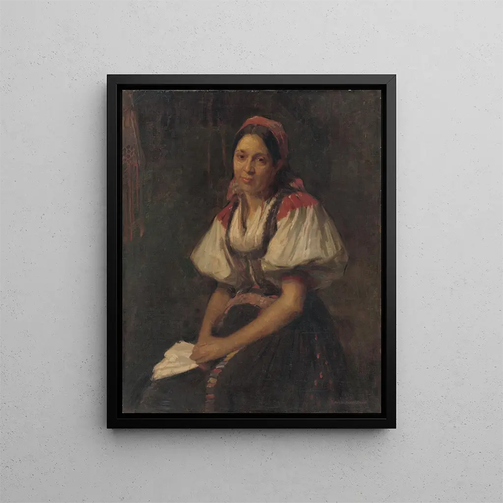 L'œuvre "Landbouwer in folkloristische kostuum" van Elemér Halász-Hradil dompelt ons onder in een wereld waar traditie en cultuur samenkomen met een zeldzame fijnheid. Dit schilderij, doordrenkt met visuele poëzie, nodigt ons uit om het landelijke leven te ontdekken door de lens van een vrouw in traditioneel kostuum. De scène, zowel intiem als universeel, roept verhalen op over leven, arbeid en trots. Bij het bekijken van deze kunstdruk wordt de toeschouwer meegenomen naar een wereld waar elk detail een verhaal vertelt, elke kleur een emotie oproept.