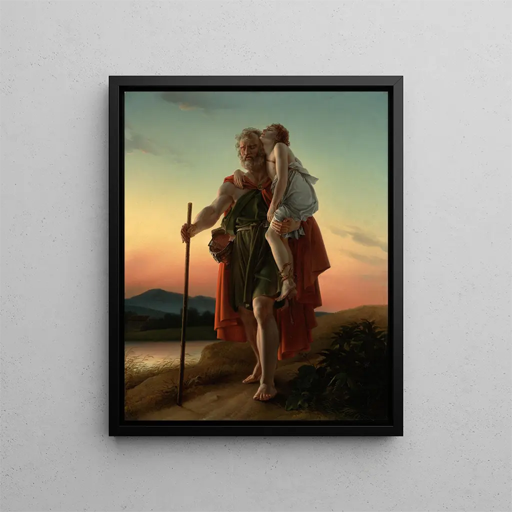 L'œuvre "Bélisaire" van François Gérard is een ware ode aan de grootsheid van de mensheid en de diepte van menselijke emoties. Dit schilderij, doordrenkt met een aangrijpende sfeer, roept de beroemde generaal uit de oudheid, Bélisaire, op, die, ondanks zijn verleden glorie, in een staat van verval verkeert. Gérard slaagt erin dit kwetsbaarheidsmoment met zo'n intensiteit vast te leggen dat de kijker niet anders kan dan diepe empathie voelen voor dit iconische personage. De compositie, zowel dramatisch als ontroerend, nodigt uit tot reflectie over het lot, de waardigheid en het geheugen. Bij het bekijken van dit werk wordt men meegenomen naar een wereld waar heldhaftigheid samengaat met melancholie, en waar elk detail een verhaal vertelt.