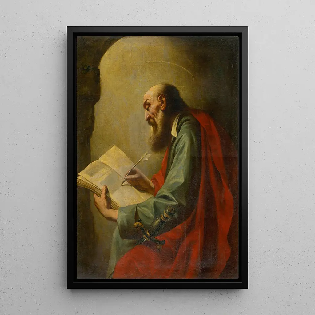 De kunstdruk van Saint Paul toont een majestueuze figuur, doordrenkt met kracht en toewijding. De rijke en diepe kleuren, gecombineerd met delicate schaduwen, creëren een dramatische sfeer die de aandacht trekt. De houding van Saint Paul, vaak afgebeeld met een boek of zwaard, symboliseert zijn rol als apostel en verdediger van het christelijk geloof. Elk detail van dit werk, van de gelaatstrekken tot de plooien van de kleding, getuigt van technische vaardigheid die hulde brengt aan de spirituele diepgang van het onderwerp.