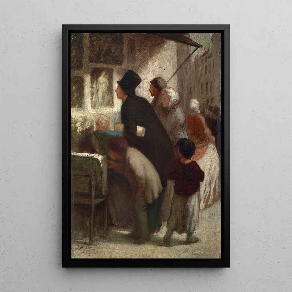 Voor de winkel van de prentendrukker: een levendige scène uit het dagelijks leven In "Voor de winkel van de prentendrukker" vangt Honoré Daumier de bruisende sfeer van een alledaags moment. De compositie is levendig, met diverse personages die interactie hebben rond de etalage, waar de kunstdrukken worden tentoongesteld. De kleuren, hoewel aardetinten, worden versterkt door heldere accenten, wat een dynamische en warme sfeer creëert. De lithografietechniek van Daumier, met zijn precieze lijnen en delicate schaduwen, brengt deze scène tot leven en nodigt de kijker uit om zich in dit bevroren moment te verdiepen. Het werk roept nieuwsgierigheid en interesse voor kunst op, terwijl het het belang van de kunstdrukker in de verspreiding van cultuur benadrukt. Honoré Daumier: een meester in de karikatuur en de samenleving Honoré Daumier, actief in de 19e eeuw, wordt erkend om zijn maatschappelijke betrokkenheid en zijn uitzonderlijk talent als karikaturist. Geïnspireerd door de politieke gebeurtenissen van zijn tijd, gebruikt hij zijn kunst om de samenleving en haar tekortkomingen te bekritiseren. Zijn creatieve periode viel samen met de ontwikkeling van de kunstdruk, een techniek die hij perfect beheerst. Daumier wist de essentie van zijn tijd vast te leggen, met humor en sociale kritiek. Zijn werken, vaak doordrenkt van realisme, getuigen van zijn wens om onrechtvaardigheden en zorgen van de arbeidersklasse te documenteren. "Voor de winkel van de prentendrukker" is een perfect voorbeeld van deze aanpak, waarbij kunst een spiegel van de samenleving wordt. Een decoratief bezit met vele voordelen De kunstdruk van "Voor de winkel van de prentendrukker" is een ideale keuze om uw woonruimte te verrijken. Of het nu in een woonkamer, kantoor of slaapkamer is, dit schilderij brengt een vleugje authenticiteit en cultuur. De kwaliteit van de kunstdruk garandeert een nauwkeurige weergave van de details van het originele werk, zodat u kunt genieten van de levendige sfeer die Daumier heeft gecreëerd. De esthetische aantrekkingskracht van dit doek ligt in zijn vermogen om gesprekken op gang te brengen en interesse voor kunst te wekken. Door dit werk in uw inrichting te integreren, biedt u niet alleen een kunstwerk, maar ook een venster naar het verleden, vol leven en betekenis.