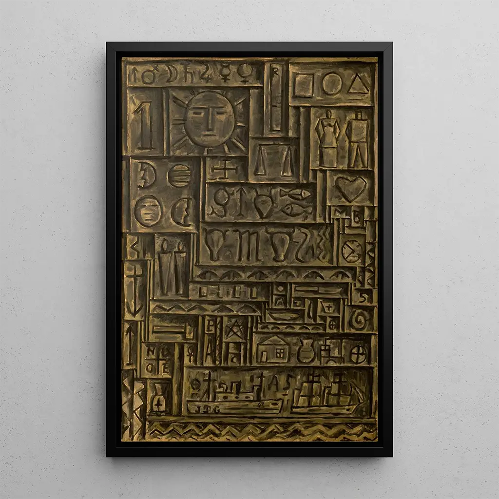 Uruguayaanse kunstenaar van de 20e eeuw, Joaquín Torres-García wordt erkend als een van de grondleggers van het constructivisme in Latijns-Amerika. Geïnspireerd door de Europese avant-garde bewegingen, ontwikkelde hij een unieke stijl die abstractie en symboliek combineert. Zijn carrière werd gekenmerkt door reizen door Europa, waar hij samenwerkte met kunstenaars zoals Piet Mondriaan en Paul Klee, wat zijn artistieke benadering verrijkte. Torres-García was ook een fervent voorvechter van de Latijns-Amerikaanse kunstdruk, en streefde ernaar een onderscheidende culturele identiteit te vestigen via zijn werken. "Art universel" getuigt van zijn inzet om culturele grenzen te overstijgen en artistieke diversiteit te vieren.