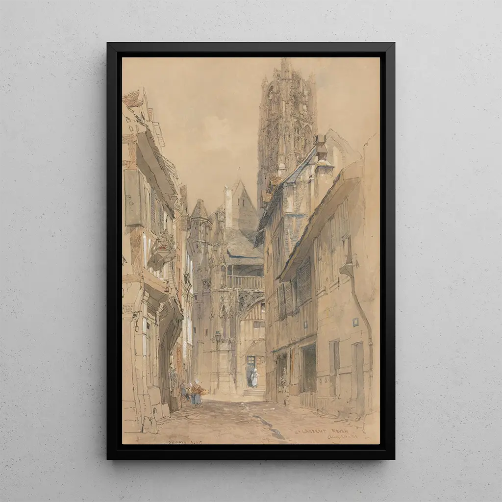 John Skinner Prout, peintre britannique du XIXe siècle, est une figure emblématique du mouvement romantique. Sa passion pour la nature et l'architecture l'a conduit à réaliser de nombreuses œuvres qui célèbrent le patrimoine culturel. Prout a su marier ses influences, notamment celles de Turner et de Constable, pour créer un style unique qui met en valeur la beauté des paysages et des monuments. Son travail autour de l'église Saint-Laurent témoigne de son engagement à immortaliser les sites historiques, offrant ainsi un précieux aperçu de l'époque victorienne.
