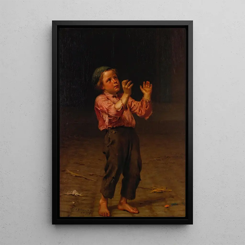 Een vastgelegde opname: een moment van intense concentratie In dit boeiende kunstdruk, Een vastgelegde opname, dompelt John George Brown ons onder in een moment van concentratie en vastberadenheid. De compositie benadrukt een jonge jongen, geconcentreerd op zijn taak, terwijl de levendige kleuren en de minutieuze details van zijn gezicht een voelbare emotie overbrengen. De techniek van Brown, die realisme en impressionisme combineert, creëert een warme en uitnodigende sfeer. Het spel van licht en schaduw versterkt de diepte van de kunstdruk, waardoor dit schilderij levendig en dynamisch wordt, alsof de jonge jongen elk moment uit het kader kan stappen. John George Brown: een meester van het victoriaanse realisme John George Brown, actief in de 19e eeuw, wordt erkend om zijn portretten van kinderen en scènes uit het dagelijks leven. Geïnspireerd door de realistische beweging, wist hij de essentie van de kindertijd vast te leggen met een unieke gevoeligheid. Zijn kunstdrukken, vaak doordrenkt met nostalgie, weerspiegelen een tijd waarin kunst probeerde het leven weer te geven zoals het is, ver weg van romantische idealisaties. Brown werd ook beïnvloed door zijn reizen door Europa, waar hij nieuwe technieken en stijlen ontdekte die zijn artistieke benadering verrijkten. Zijn nalatenschap blijft bestaan, en zijn kunstdrukken blijven diepe emoties oproepen bij degenen die ze bekijken. Een decoratief kunstdruk met vele voordelen De kunstdruk van Een vastgelegde opname is een decoratief stuk dat elke ruimte kan verrijken, of het nu een woonkamer, kantoor of slaapkamer is. De afdrukkwaliteit garandeert een opmerkelijke fideliteit aan de details van het origineel, zodat u kunt genieten van de esthetische aantrekkingskracht van de kunstdruk in uw interieur. Dit schilderij, met zijn warme sfeer en boeiend onderwerp, nodigt uit tot reflectie en contemplatie. Door deze doek in uw decoratie te integreren, brengt u een vleugje elegantie en cultuur, terwijl u een inspirerende en gastvrije omgeving creëert.