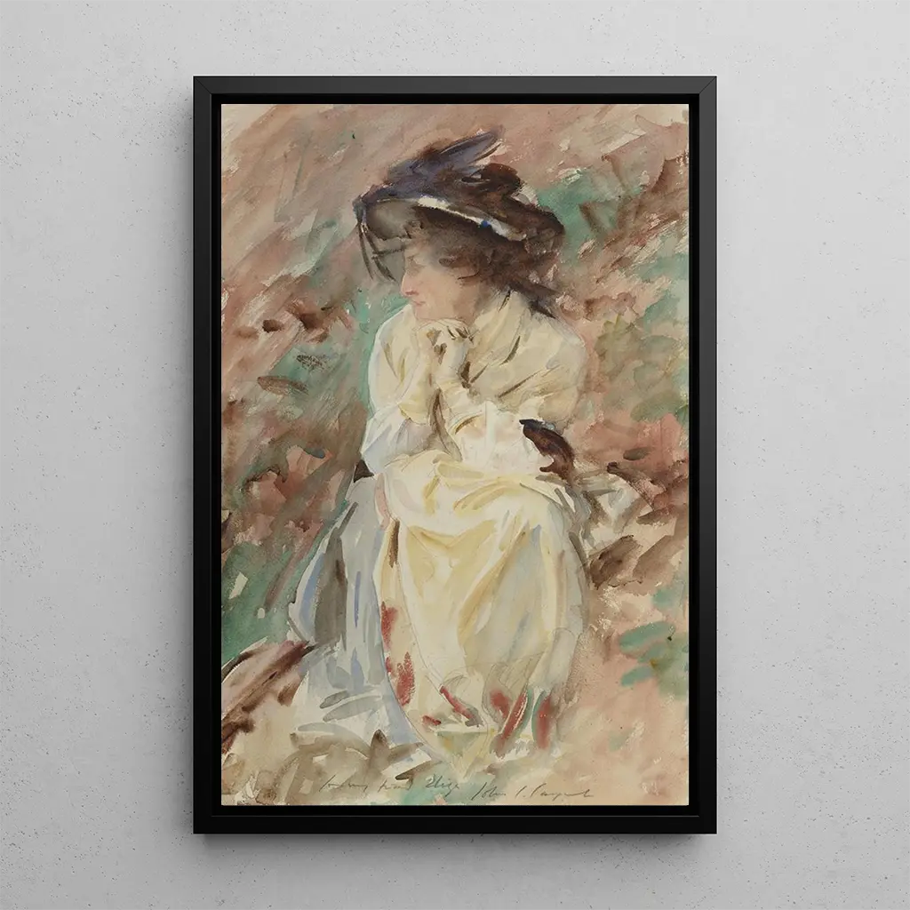 De kunstdruk van Eliza, vervaardigd door John Singer Sargent, roept een zachtheid en finesse op die de kijker onmiddellijk betoveren. Het schilderij benadrukt een jonge vrouw met een delicate uitstraling, gekleed in een elegante jurk die lijkt te zweven rondom haar. De pastelkleuren en het subtiel verspreide licht creëren een dromerige sfeer, terwijl de minutieuze details van het gezicht en de handen van het model getuigen van het uitzonderlijke talent van Sargent. Elke penseelstreek lijkt doordrenkt met een voelbare emotie, die de toeschouwer uitnodigt zich onder te dompelen in de intieme wereld van deze vrouwelijke figuur.