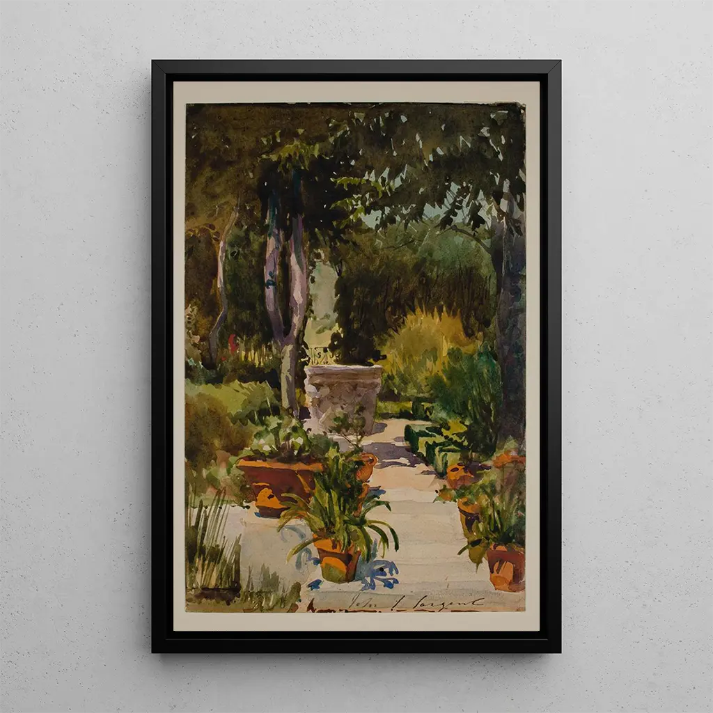 John Singer Sargent, Amerikaanse kunstenaar van Italiaanse afkomst, is vooral bekend om zijn portretten, maar hij excelleerde ook in het weergeven van landschappen, zoals blijkt uit de Jardin de Mme Thayer Massachusetts. Opgeleid in Europa, werd Sargent beïnvloed door de grote meesters van de schilderkunst en integreerde impressionistische elementen in zijn werk. Aan het eind van de 19e eeuw wist hij de essentie van het Amerikaanse en Europese leven vast te leggen, terwijl hij de thema's natuur en intimiteit verkende. Zijn werk over tuinen en landschappen weerspiegelt zijn liefde voor natuurlijke schoonheid en zijn wens emoties over te brengen via kleur en licht.