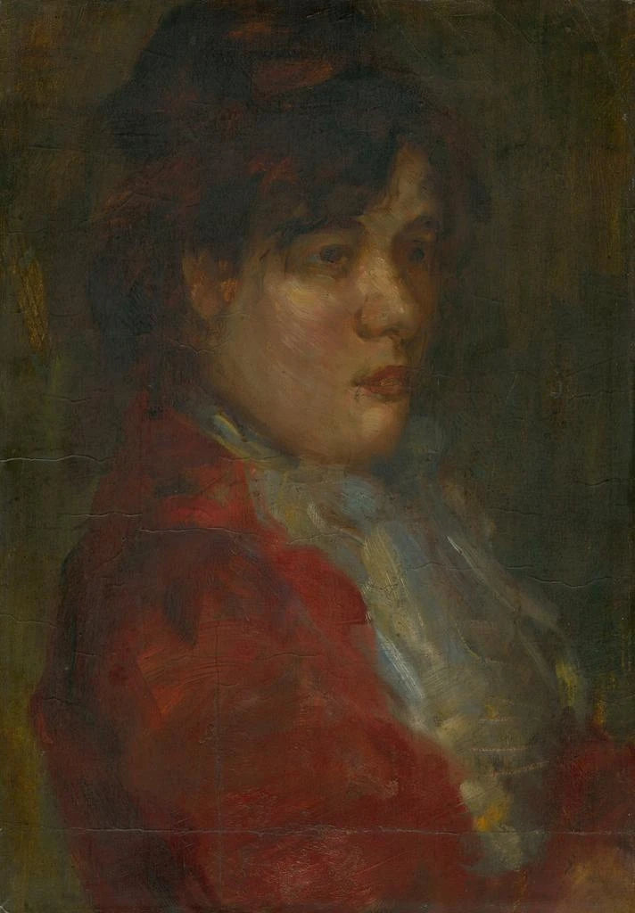 Portrait de jonge vrouw in rood : een ode aan jeugd en schoonheid