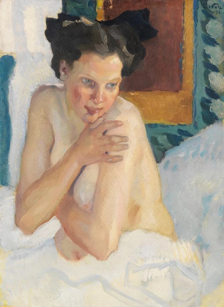 Kunstdruk | Éveil demi-nu zittend - Leo Putz