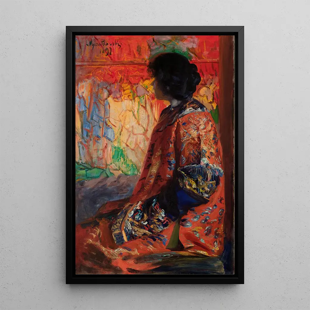 Leon Wyczółkowski, Poolse schilder actief aan het einde van de 19e eeuw, wordt erkend voor zijn unieke benadering van het orientalismo. Geïnspireerd door reizen en culturen die hij heeft ontmoet, wist hij Aziatische elementen in zijn werk te integreren, terwijl hij trouw bleef aan de artistieke beweging van zijn tijd. Zijn carrière werd gekenmerkt door een zoektocht naar authenticiteit en schoonheid, wat hem onderscheidde van zijn tijdgenoten. "Japans vrouwelijk" getuigt van zijn interesse in het Andere en van zijn vermogen om universele emoties te vertalen via exotische motieven.