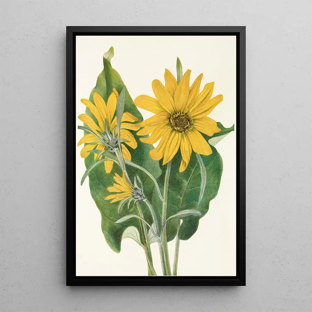 De kunstdruk van het kunstdruk Balsamorhize sagittée Balsamorhiza sagittata is een perfecte aanvulling op uw interieurdecoratie, of het nu in een werkruimte, woonkamer of slaapkamer is. De afdrukkwaliteit garandeert een trouwheid aan de levendige kleuren en de gedetailleerde weergave van het originele kunstwerk. Dit doek brengt een vleugje frisheid en dynamiek in uw omgeving, terwijl het de schoonheid van de wilde flora viert. Transformeer uw ruimte met dit decoratieve stuk dat kunst en natuur combineert, en laat u inspireren door de pracht van het plantaardige leven.