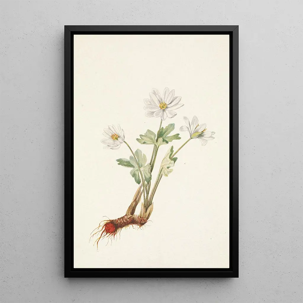 De kunstdruk Sanguinaire du Canada, ook bekend als Sanguinaria canadensis, is een werk dat de essentie van de Noord-Amerikaanse flora vastlegt. Met zijn delicate witte bloemen die in de lente bloeien, roept dit doek een rustige en sereen sfeer op. De zachte kleuren en de minutieuze details van de plant, weergegeven met een aquareltechniek, dompelen de kijker onder in een natuurlijke wereld waar schoonheid langzaam onthuld wordt. De kunstenaar slaagt erin een gevoel van frisheid en vernieuwing over te brengen, en nodigt uit tot contemplatie van de wonderen van de natuur.