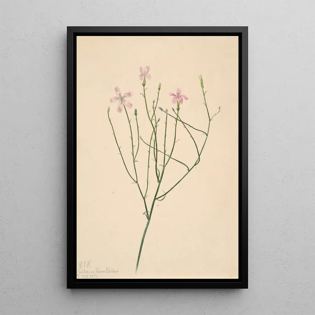 De kunstdruk van de Fleur skelet Lygodesmia juncea onthult een fascinerende plant, emblematisch voor dorre landschappen. Zijn slanke stelen en delicate bloemen, bijna doorschijnend, roepen een lichte dans op in de wind. De nuances van groen en geel mengen harmonieus, waardoor een levendig schilderij ontstaat dat het zonlicht vangt. De aquareltechniek, gebruikt door Mary Vaux Walcott, brengt dit werk tot leven en eert de kwetsbaarheid en veerkracht van de natuur. Deze poëtische voorstelling nodigt uit tot diepe contemplatie, waarbij elk detail het verhaal vertelt van een unieke omgeving.