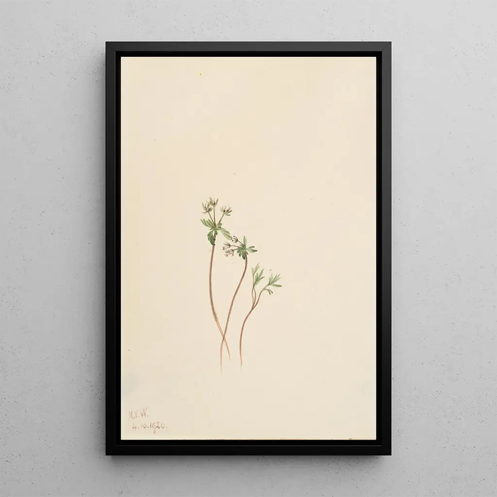 De kunstdruk van het werk "Messager du printemps Erigenia bulbosa" van Mary Vaux Walcott dompelt ons onder in een delicate bloemrijke wereld. Met pastelkleuren die de zachtheid van de lente oproepen, vangt dit doek de vluchtige schoonheid van bloemen. De minutieuze details van de bloemblaadjes en bladeren getuigen van een beheersde aquareltechniek, die een lichte en luchtige sfeer creëert. Elke penseelstreek lijkt een nieuw leven te geven aan deze plant, en nodigt de kijker uit om de pracht van de natuur die na de winter herleeft, te waarderen.