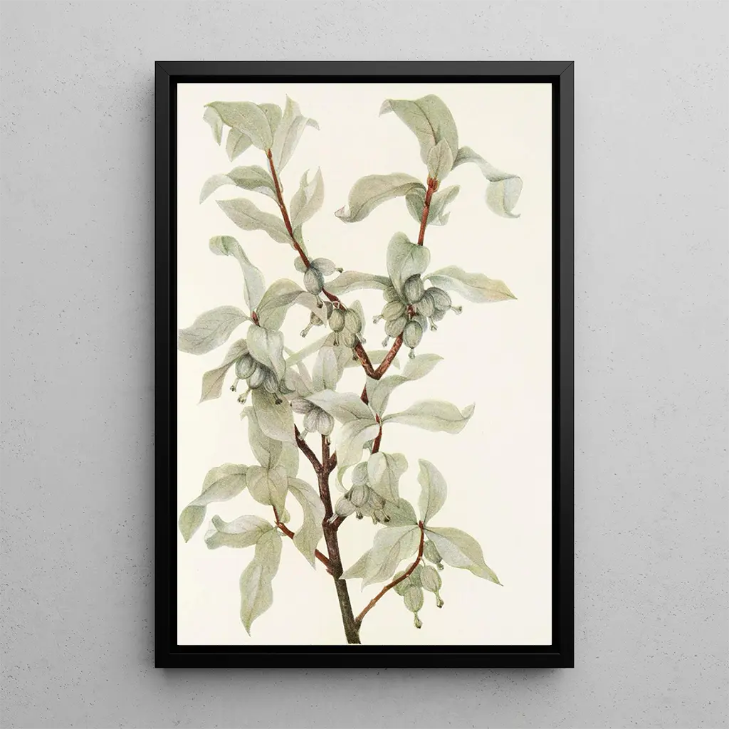 La kunstdruk du Fruit de chalef argenté Elaeagnus commutata nous plonge dans un univers où la délicatesse des formes et la richesse des couleurs s’entrelacent harmonieusement. Mary Vaux Walcott, avec son talent inégalé, capture la beauté de cette plante, révélant des nuances argentées qui scintillent sous la lumière. La composition, à la fois simple et raffinée, évoque une atmosphère de sérénité et de contemplation. Chaque détail, des feuilles aux fruits, est soigneusement rendu, témoignant de l’attention portée à la nature. Ce tableau, véritable hommage à la flore, invite à une exploration visuelle qui enchante l’esprit.