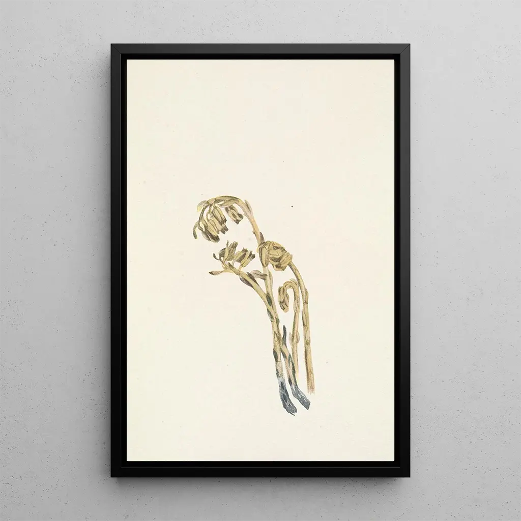 De Hypopitys américaine pâle, ook bekend als "pale van het bos", onthult zich met subtiele gratie. Dit kunstdruk van Mary Vaux Walcott vangt de vergankelijke schoonheid van deze zeldzame plant, met nuances van lichtgeel en zachte groen die de zachtheid van de onderbossen oproepen. De aquareltechniek, met finesse toegepast, maakt het mogelijk om de transparantie van de bladeren en de delicatesse van de bloemen weer te geven. De sfeer die uit deze kunstdruk straalt, nodigt uit tot een stille contemplatie, waarin elk detail lijkt te fluisteren over de geheimen van de natuur.