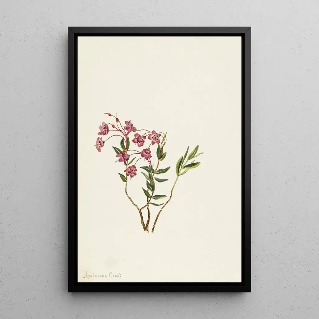 De kunstdruk Kalmia des montagnes Rocheuses, vervaardigd door Mary Vaux Walcott, dompelt ons onder in een bloemrijk universum met verbluffende schoonheid. Dit kunstwerk benadrukt de fijnheid van de bloemen van Kalmia microphylla, met tinten variërend van lichtroze tot diep paars. De aquareltechniek, gebruikt door de kunstenaar, geeft de compositie een gevoel van lichtheid, terwijl de minutieuze details van de bloemblaadjes en bladeren de essentie vastleggen van deze iconische plant uit de Rocky Mountains. De sfeer die uit dit schilderij opwelt, roept een wandeling in de natuur op, waar elke bloem lijkt te vibreren op het ritme van de wind.