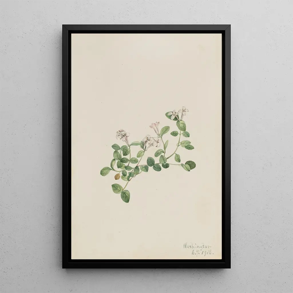De kunstdruk van Mitchella rampante, een werk van Mary Vaux Walcott, dompelt ons onder in een botanisch universum vol poëzie. Dit doek benadrukt de schoonheid van de bloemen van de klimplant, met tinten van heldergroen en accenten van zuiver wit. De aquareltechniek, vakkundig toegepast, maakt het mogelijk de delicatesse van de bloemblaadjes en de textuur van de bladeren vast te leggen. De sfeer die uit dit werk straalt, is zowel rustgevend als inspirerend, en nodigt de kijker uit tot een aandachtige contemplatie van de natuur en haar wonderen.