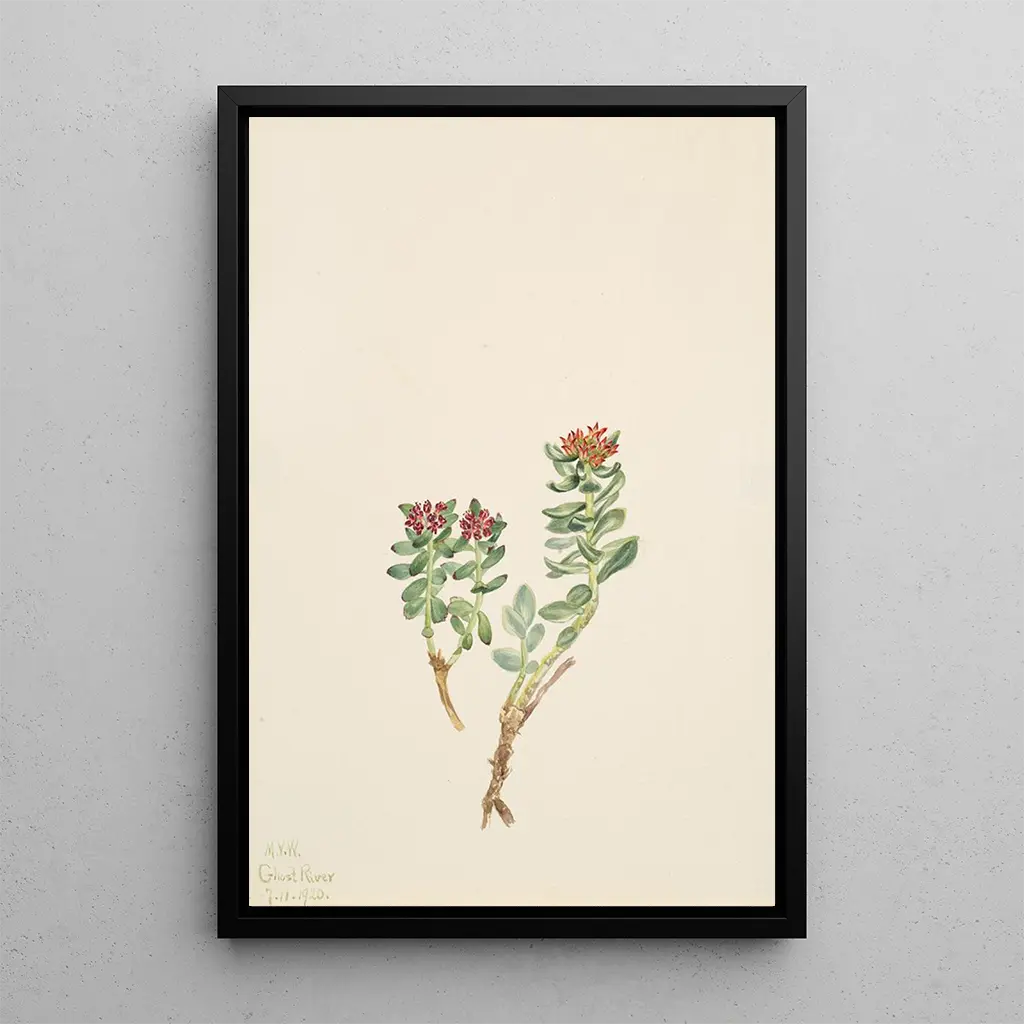 De kunstdruk van Sanifoiga adscendeus, met zijn delicate vormen en levendige kleuren, brengt ons in een wereld waar de natuur in al haar pracht bloeit. De tinten groen en violet verweven zich, waardoor een levendig schilderij ontstaat dat de rijkdom van de biodiversiteit oproept. Mary Vaux Walcott, door haar minutieuze aanpak, slaagt erin deze zeldzame plant te vereeuwigen, waarbij elk detail met opmerkelijke precisie wordt vastgelegd. De sfeer die van dit werk uitgaat, is zowel rustgevend als inspirerend, en nodigt uit tot contemplatie en waardering van de wonderen van de flora.