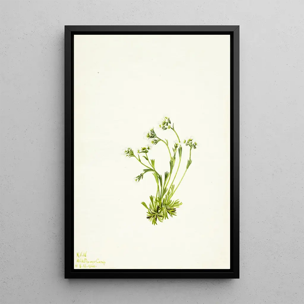 De kunstdruk van Saxifrage Saxifraga caespitosa dompelt ons onder in een delicat universum van bloemen, waar elk detail zorgvuldig is vastgelegd. De groene en witte tinten mengen harmonieus, en roepen de frisheid van de bergen op. De aquareltechniek, gebruikt door Mary Vaux Walcott, geeft dit werk een lichtheid en transparantie die het licht op een unieke manier vangen. De sfeer die uit dit doek straalt, is rustgevend en nodigt uit tot het bewonderen van de wonderen van de natuur. Elke bloemblad lijkt te vibreren onder de adem van de wind, en creëert een intieme verbinding tussen de toeschouwer en de natuurlijke wereld.