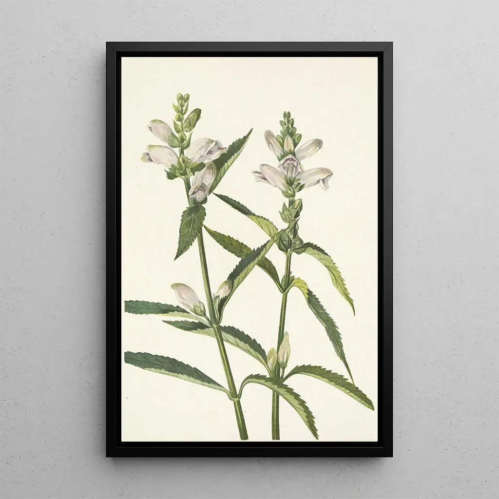 De kunstdruk van de Tête de schildpad Chelone glabra, vervaardigd door Mary Vaux Walcott, dompelt ons onder in een fascinerende botanische wereld. Met haar groene tinten en nuances van geel roept dit werk de delicatessen en kracht van de plant op. De minutieuze details van de bladeren en bloemen, weergegeven met een aquareltechniek, brengen een sfeer van rust en contemplatie. Elke penseelstreek lijkt de essentie van deze soort vast te leggen, en nodigt ons uit om de natuurlijke schoonheid om ons heen te waarderen. De kunstenaar slaagt erin een intieme verbinding te creëren tussen de kijker en het onderwerp, waardoor deze kunstdruk bijzonder boeiend wordt.