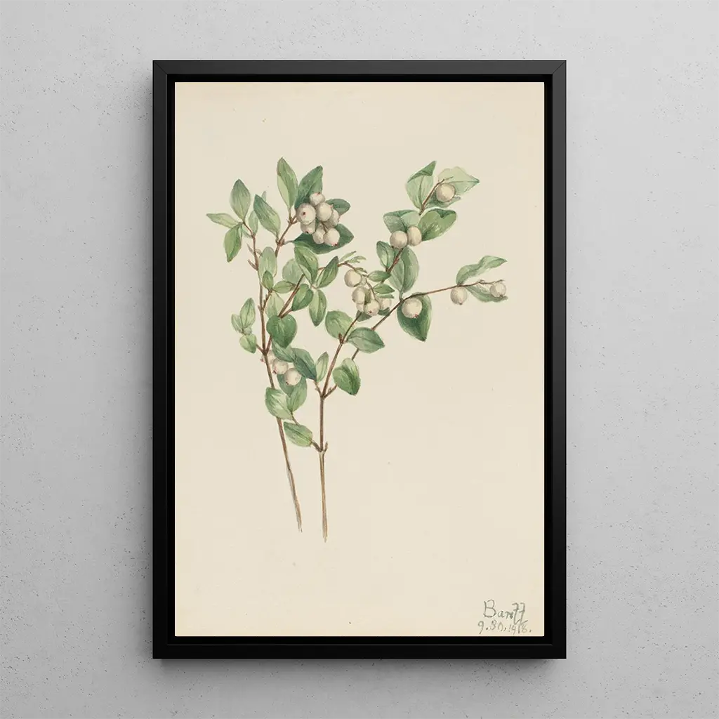 De kunstdruk Symphorine blanche Symphoricarpos albus van Mary Vaux Walcott vangt de lichtheid en de frisheid van de lente. De kleine witte bessen, delicieus weergegeven, steken af tegen een groenachtige achtergrond, waardoor een opvallend contrast ontstaat. De aquareltechniek stelt de kunstenaar in staat te spelen met transparantie en helderheid, en eert de vergankelijke schoonheid van deze plant. Elk detail wordt zorgvuldig bestudeerd, wat getuigt van een passie voor botanica en een wens om de natuur in al haar pracht te vieren.