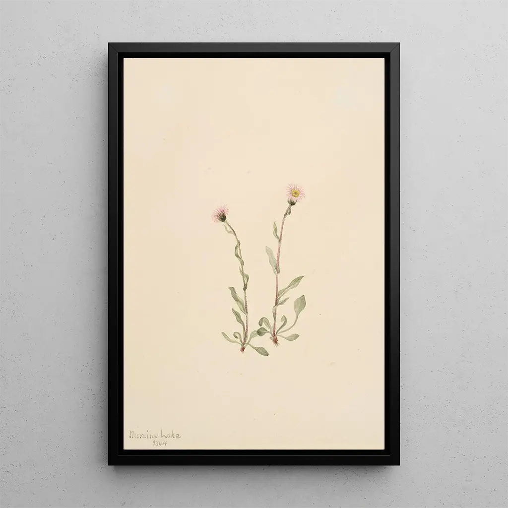 De kunstdruk van Vergerette rose Erigeron jucundus dompelt ons onder in een levendige wereld van kleuren en zachtheid. De delicate nuances van roze en groen verweven zich om een rustgevende, bijna dromerige sfeer te creëren. Mary Vaux Walcott, met haar beheersing van botanische technieken, slaagt erin de vergankelijke schoonheid van deze plant vast te leggen. Elke bloemblad lijkt te dansen onder het licht, en nodigt de kijker uit tot een sereen meditatief moment. Het werk roept een geheime tuin op, waar de natuur in al haar pracht bloeit en een moment van rust biedt te midden van de dagelijkse drukte.