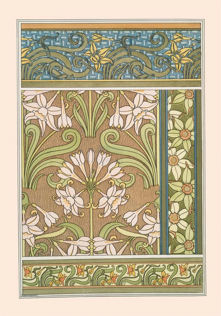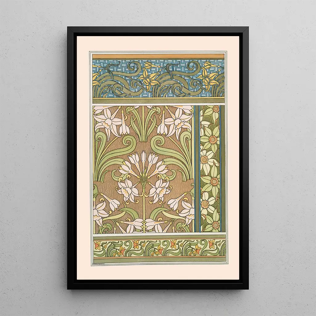 Maurice Pillard Verneuil, actief aan het einde van de 19e eeuw en het begin van de 20e eeuw, wordt erkend om zijn rol in de ontwikkeling van bloemkunst binnen de art nouveau-beweging. Geïnspireerd door organische vormen en natuurlijke motieven, wist Verneuil deze elementen in zijn werken te integreren, waardoor een unieke stijl ontstond die de schoonheid van de natuur viert. Zijn carrière, gekenmerkt door een voortdurende zoektocht naar harmonie tussen kunst en natuur, heeft een onuitwisbare indruk achtergelaten in de wereld van decoratieve kunst. Jonquille 2 past perfect binnen deze traditie en illustreert zijn talent om de essentie van bloemen vast te leggen.