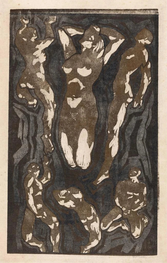 Kunstdruk | Samenstelling met zes menselijke figuren - Reijer Stolk