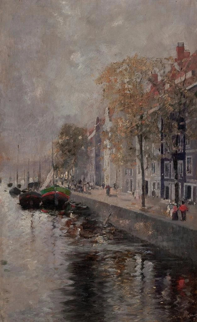 De kunstdruk van Amsterdam door Friedrich Stahl vangt de essentie van deze iconische stad. De grachten kronkelen door het schilderij en weerspiegelen de gekleurde gevels van de typische huizen. De tinten blauw en groen roepen een rustige sfeer op, terwijl de gouden lichtaccenten een magisch moment bij zonsondergang suggereren. De techniek van Stahl, die realisme en impressionisme combineert, creëert een meeslepende sfeer die de kijker meeneemt naar het hart van het Amsterdams leven. Elk detail, van de aangemeerde boten tot de voorbijgangers die langs de kades flaneren, draagt bij aan een harmonieuze en levendige compositie.